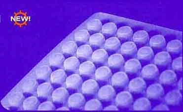MicroMat offers a - convenient, easy-to-use., one-piece Teflon®-coated silicone rubber seal for Sun's 96-well and 96 deep-well microplates. MicroMat provides individual well seals and the capability of automated sampling directly through the resealable closure. Ease-of-Use MicroMat can be used with Sun's' S.B.S. standard 96-well 'U', 'V', or flat bottom - polypropylene or polystyrene microplates and 1.2mL 96 deep-well polypropylene microplates. . MicroMat is easily applied to microplates by hand eliminating the need for sealing tools or rollers. |